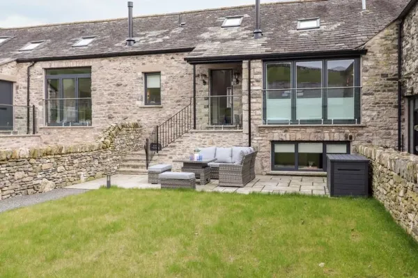 We stayed in Ada’s Hideaway, booked via Sykes Cottages, a tucked‑away barn conversion hidden in the rural countryside of Stainton near Sizergh, just a few miles from Kendal in Cumbria. It’s part of a cluster of luxury cottages on a working farm, meaning gentle agricultural life just adds to its charm (expect to hear livestock or see farm vehicles). From the back garden we had rolling views across fields and could see horses in adjacent paddocks – a quiet, pretty glimpse of country life that felt like a real treat.