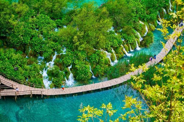The park features a winding wooden path which takes visitors over the lake itself. This is one of the most well-known sights in Plitvice Lakes, and it looks just as scenic from above as it does when you're walking on it.