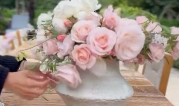 Meghan put together dusky pink and white roses in a vase, which Harry called "beautiful".