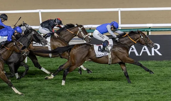 Vercors (IRE) wins under Silvestre De Sousa for Brazilian‑Uruguayan trainers Antonio Cintra and Julio Olascoaga. - Photo Dubai Racing Club